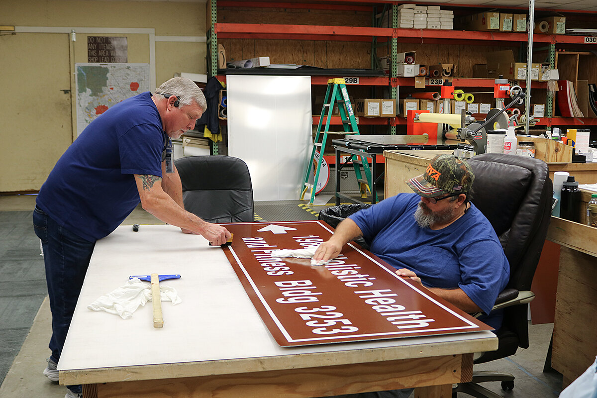 That change was the culmination of months of intense work on base – to plan the ceremony, then to change out almost everything that said Fort Benning. Among other items, that included all the signs on base, patches for the uniforms, the 35,000 books in the library, logos on the golf course equipment.