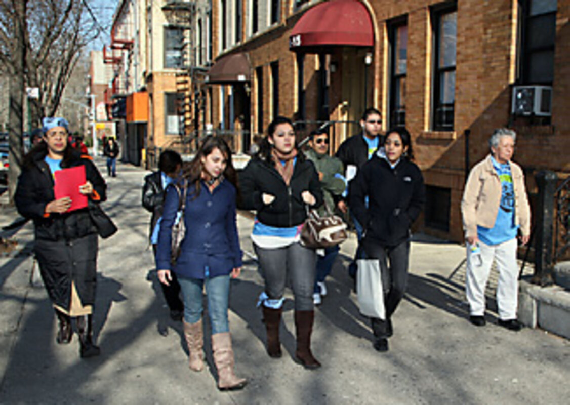She's also working to get other immigrants-turned-US citizens to cast their ballots. Concerned with the poor economy, lack of access to affordable healthcare, and immigration-reform legislation, she joined about 30 volunteers, Betancur canvassed her primarily low-income, minority neighborhood reminding registered voters to get out and vote on Tuesday. She's part of a voter-mobilization push by the local branch of Make the Road New York, a Latino immigrant advocacy group.