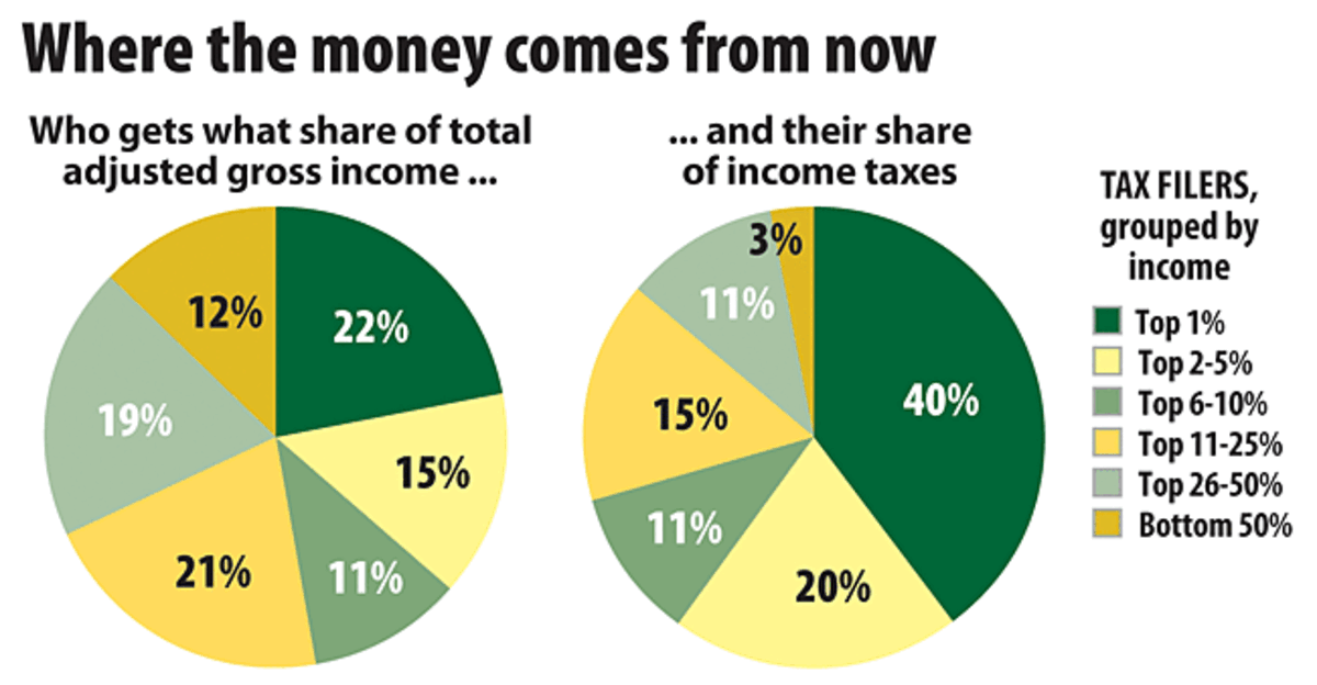 Taxes cut to rates ranging from 16 to 77 percent of income.