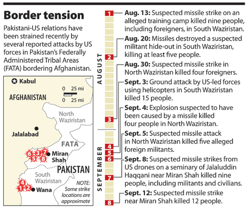 Even before the July order, the US had undertaken covert operations in Pakistan's tribal areas. Moreover, the CIA over the past year has stepped up missile attacks by the unmanned Predator drones it operates to hit targets in the region. That increase has coincided with a deterioration of the war in Afghanistan, where the Afghan Army and NATO forces have come under increasing attack from militants crossing over the rugged and lawless border from Pakistan.