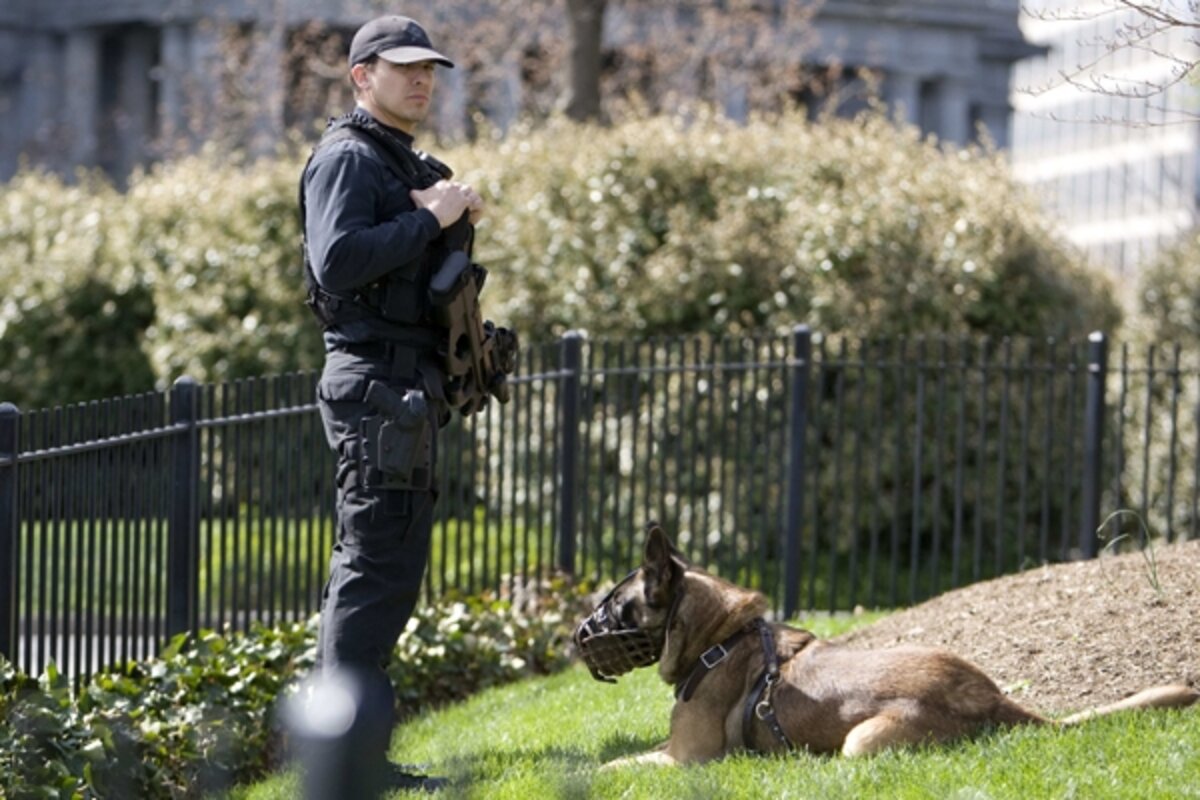 When reporters emerged from Press Secretary Robert Gibbs鈥檚 3:00 p.m. briefing, guards kept them from taking the normal exit out the front gate of the White House and had them use an exit near the rear of the mansion. A muzzled German Shepherd watched from the lawn as reporters walked out.