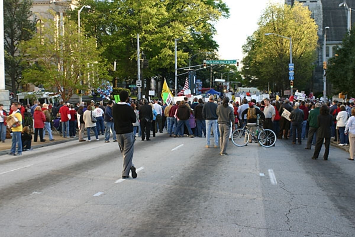 Standing back from the crowds at the Atlanta rally, J.C. Greene, an AmeriCorps volunteer, said he expected the crowds to be much larger 鈥 and more diverse. 鈥淭hey鈥檙e trying to build some momentum,鈥 he says, 鈥渂ut I think it just mostly shows the state of our country right now.鈥