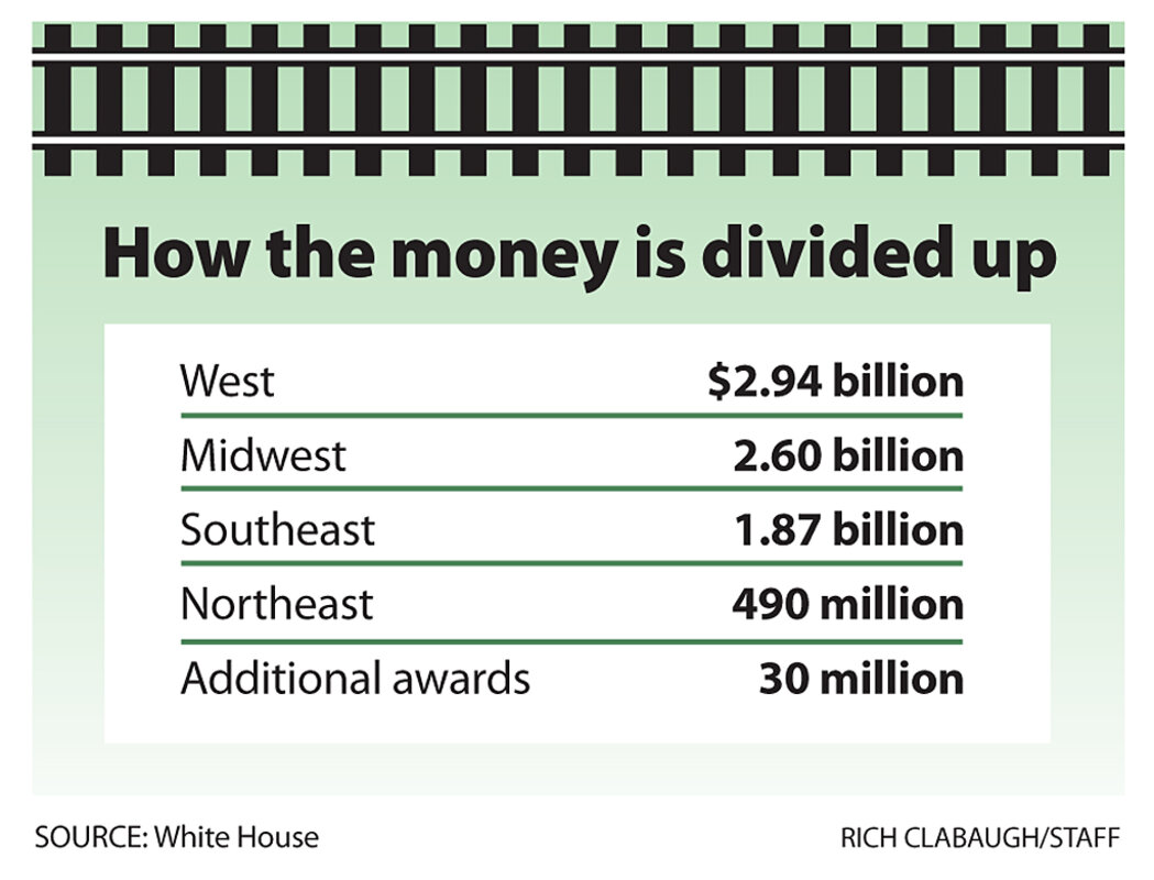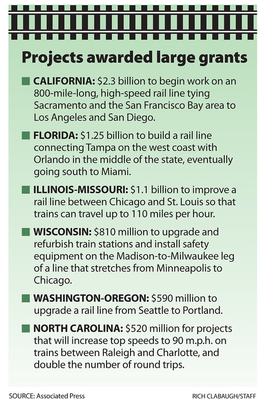 Beside the $8 billion in high-speed rail funding in last year鈥檚 American Recovery and Reinvestment Act (ARRA), Obama has pledged an additional $5 billion through the annual budget process. States receiving more than $150 million in federal funds include Florida, North Carolina, Illinois, Washington, Oregon, Wisconsin, Ohio, Michigan, Virginia, and New York.