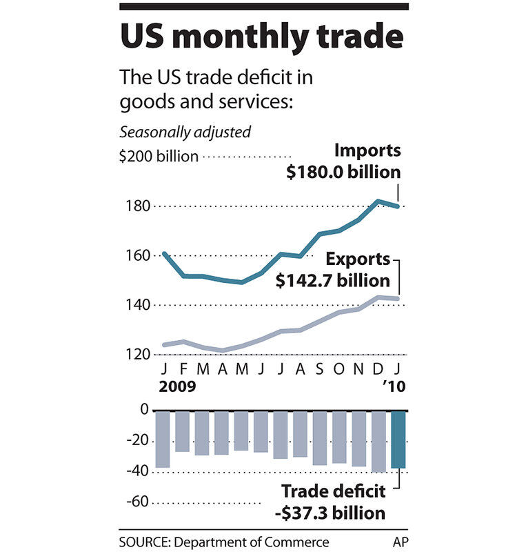 The announcement about export strategy came as a government report showed a narrower-than-expected trade deficit for the US in January. Imports exceeded exports by $37.3 billion, with the volume of oil and automobile imports falling for the month.