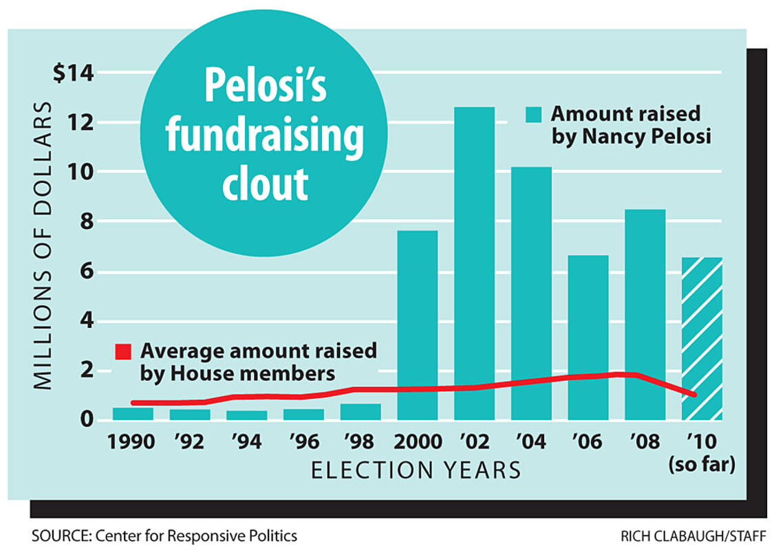 Pelosi still has a formidable capacity to raise funds for party members. She has collected $28.7 million for the Democratic Congressional Campaign Committee in the current election cycle, compared with $12 million cash on hand for the NRCC. She travels widely, but selectively.