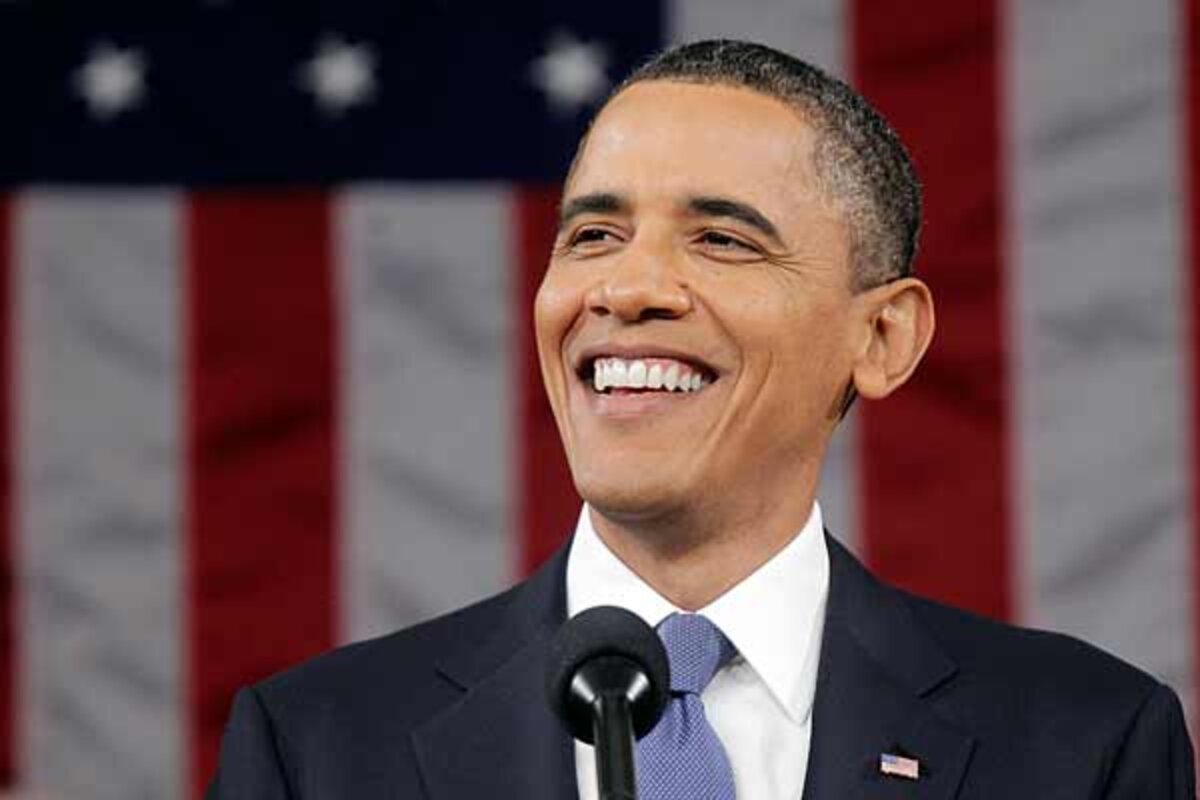 鈥淣ow, I have heard rumors that a few of you still have concerns about our new health-care law,鈥 Obama said, grinning broadly and eliciting laughter.