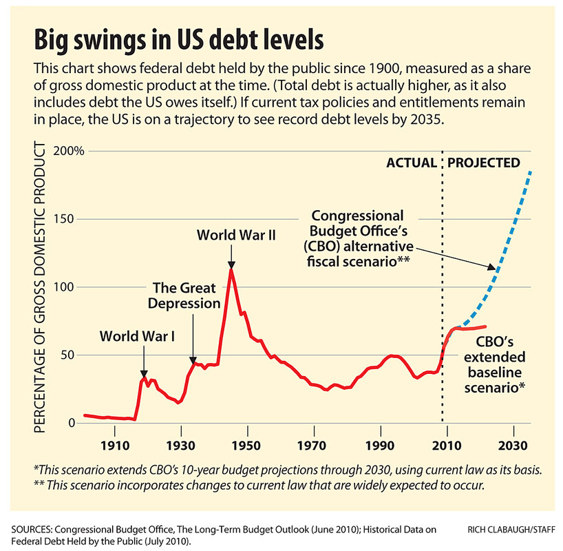 鈥S debt held by the public would grow to 185 percent of the national economy by 2035, driving up interest rates and lowering growth and living standards.