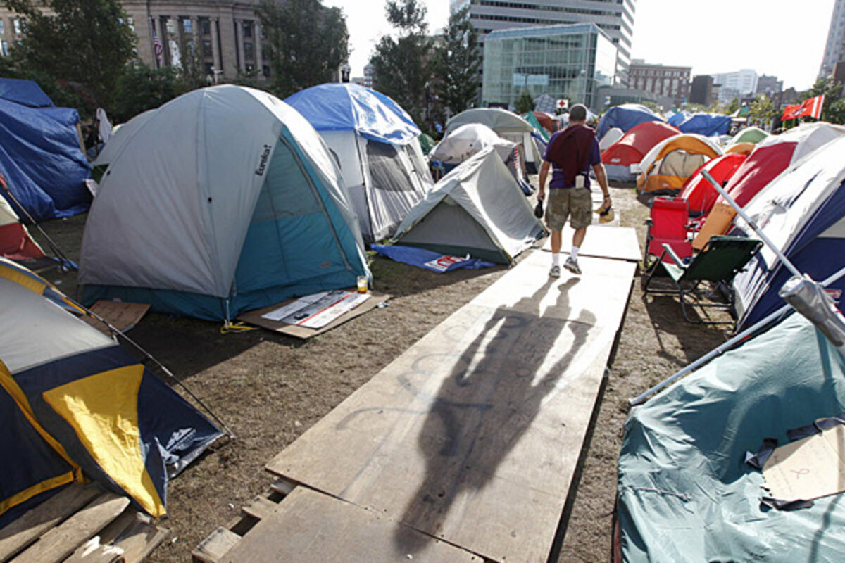 In Boston, weather is big on the organizers' minds as cooler nights loom. Sleeping bags and blankets are high on their lists of requested items, as are small space heaters and generators. Warm clothes are happily accepted, although after a tweet requesting socks generated an outpouring of warm footwear, they rescinded the request. They are also looking for more power. They have a few generators and are looking at alternative energy sources.