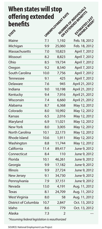 For a complete list of when states will stop offering extended unemployment benefits when,聽click on the chart above and to the left.