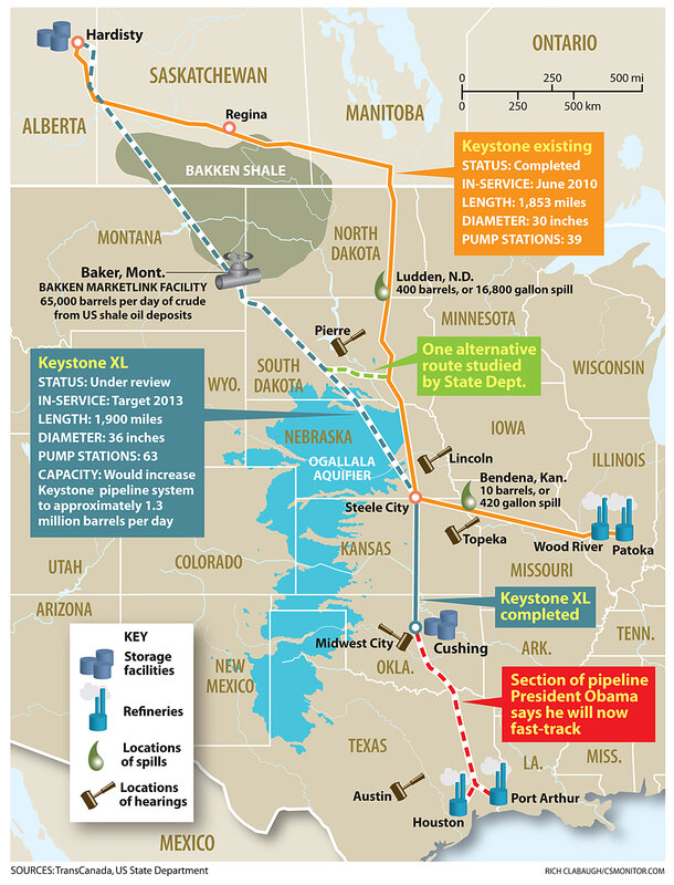 The president joined pipeline proponents in arguing that it will relieve a bottleneck at Cushing that has stemmed the flow of important new US oil production from the Bakken shale-oil formation in North Dakota. So much oil is flowing from that region that much of it ends up sitting in tank farms in Cushing.