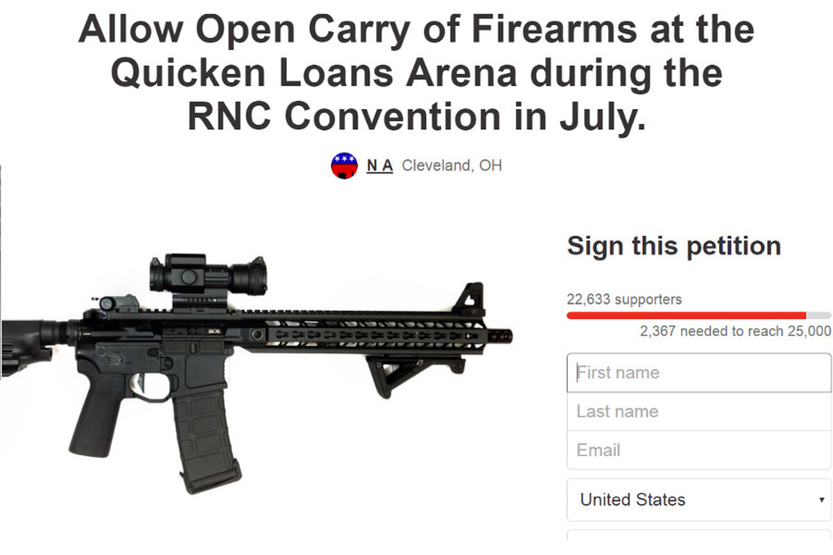 More than 20,000 people have signed a petition聽to allow the open carry of firearms at the Republican National Convention this July.