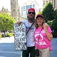 Still, at a Bernie or Bust rally on Thomas Paine Plaza, the speakers chanted a bit louder and flags waved a bit faster.聽