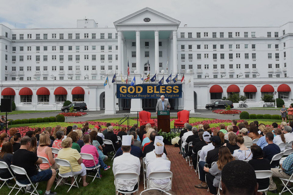 But his efforts received much less attention than those of his Democratic rival. The Greenbrier is located in an area that was hit hard by the flooding, forcing a slew of repairs and the cancellation of annual golf tournament on the grounds.