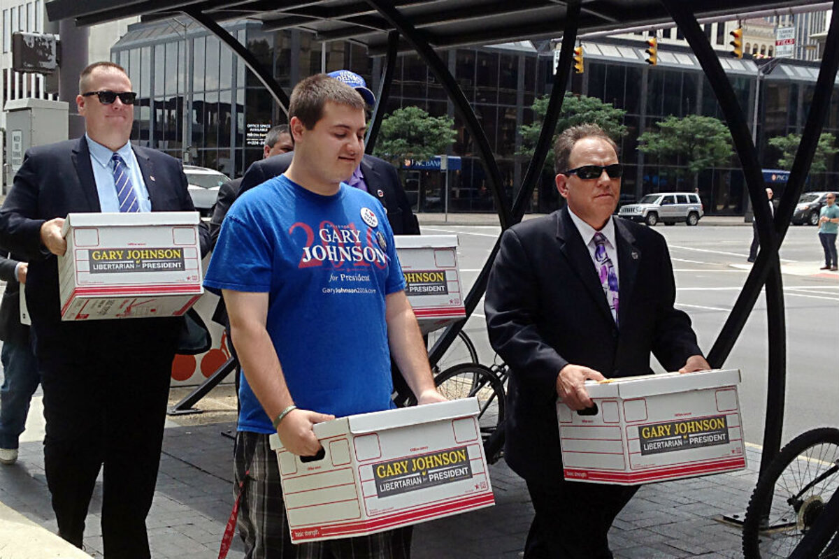 Both have submitted the necessary 3,000 signatures to be listed on the ballot as presidential candidates. Ms. Stein's supporters delivered stacks of paperwork to the Secretary of State's office Friday; Mr. Johnson had already qualified. The election is Nov. 8.