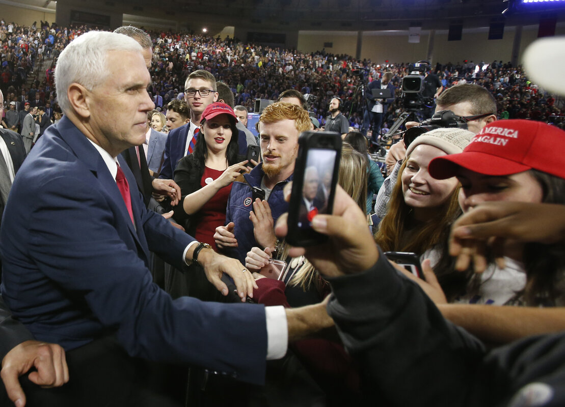 When Donald Trump鈥檚 running mate, Mike Pence, took the stage Wednesday morning at Liberty University the crowd of 8,500 people 鈥 mostly students 鈥 erupted in applause.