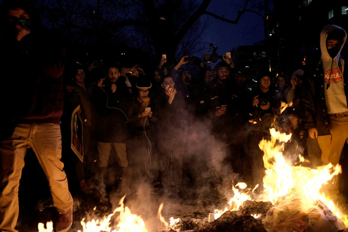 Eventually, some of the demonstrators began throwing rocks and bottles at police officers. Newspaper vending machines outside The Washington Post were tipped over and set on fire. At other locations around the city, protesters tried to block access to various inaugural events, though there were no other reports of violence.