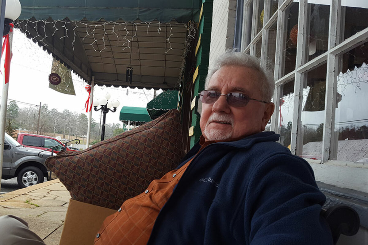 Roy Orlinger looks like any good husband as he patiently waits outside a row of Warm Springs gift shops as his wife shops, eventually emerging with a couple of throw pillows.