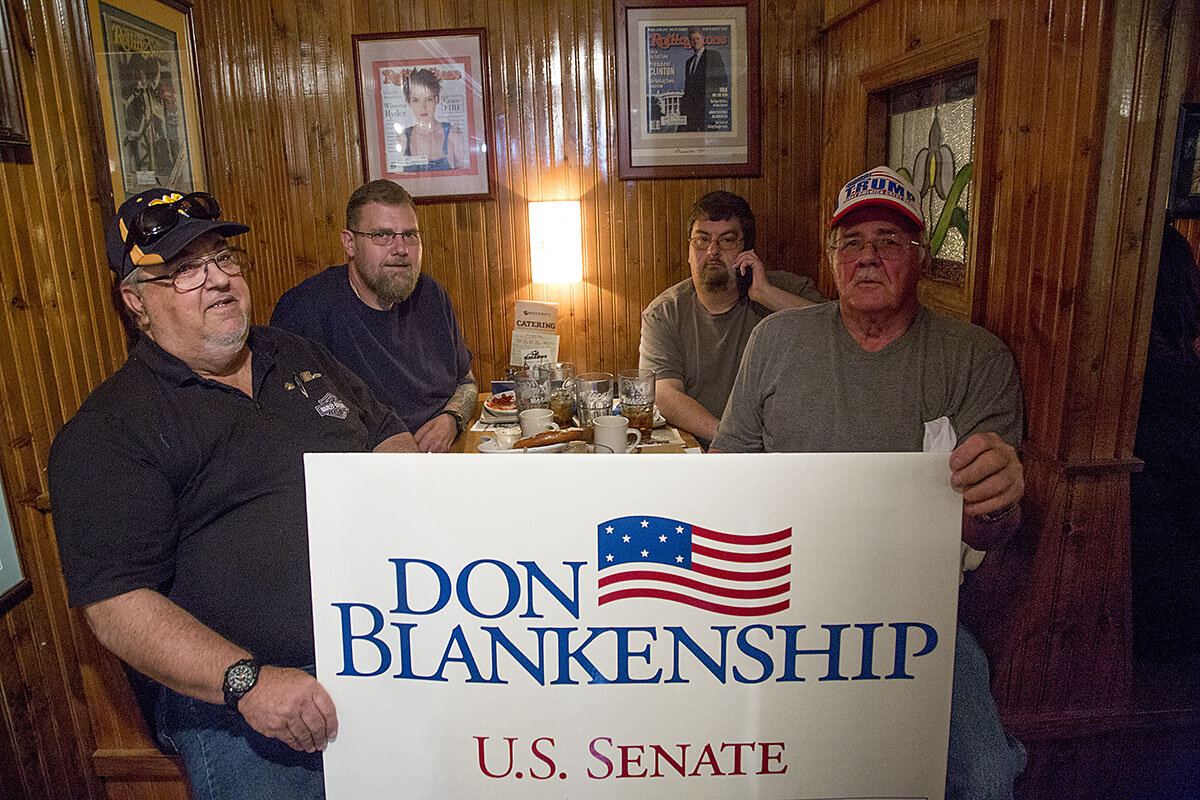鈥淭here is three of the worst candidates I鈥檝e ever seen to replace him,鈥 says Deke Mylam, who says he has only voted for a Democrat once. 鈥淸Blankenship] is a known criminal whereas the other two are suspected criminals.鈥