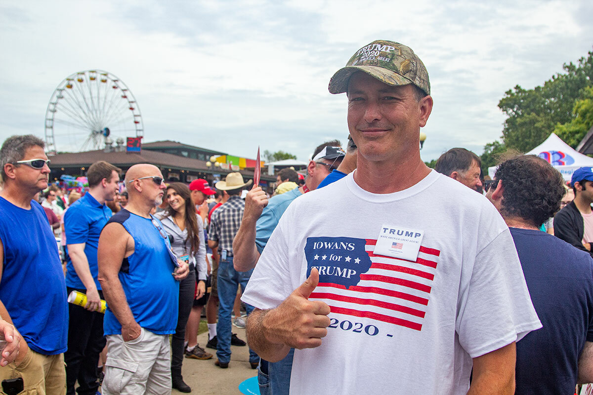 鈥淕o Trump!鈥 shouts a man sporting an 鈥淚owans for President Trump鈥 shirt.