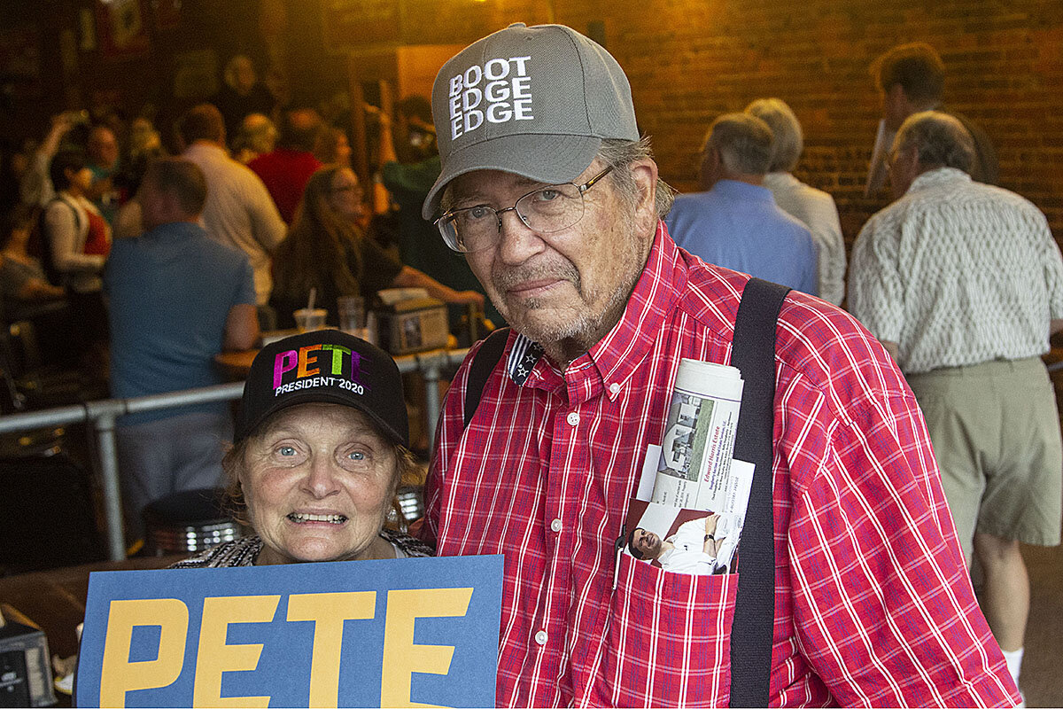鈥淚鈥檓 so nervous. You鈥檙e such a rock star,鈥 gushes one woman. A man sporting a BOOT EDGE EDGE T-shirt that doubles as a pronunciation guide urges the mild-mannered mayor from South Bend, Indiana, to 鈥渄o a Kamala Harris鈥 in the next debate, referring to the California senator鈥檚 more combative approach. 鈥淪tand out!鈥