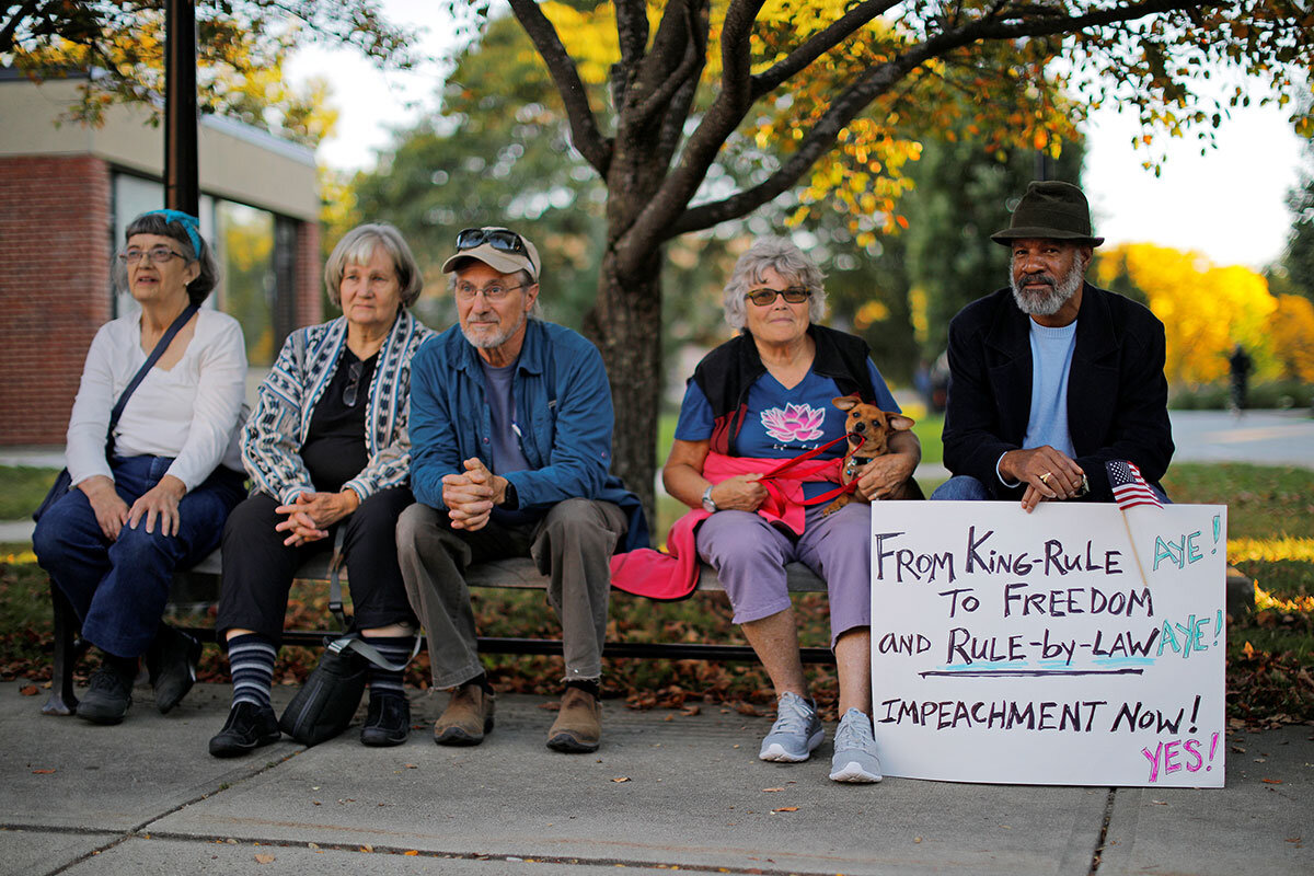 Back at the Mall of New Hampshire, Charlie (who did not give his last name), sits alone on a bench, an empty ice cream cup next to him. Asked about impeachment, he says he’s against it, because he voted for Mr. Trump in 2016.