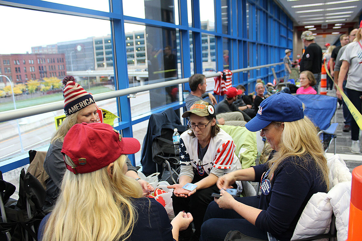 There’s a competitive element to some of it. Rally attendance and arrival times are currency among this group, signaling depth of support for the president.