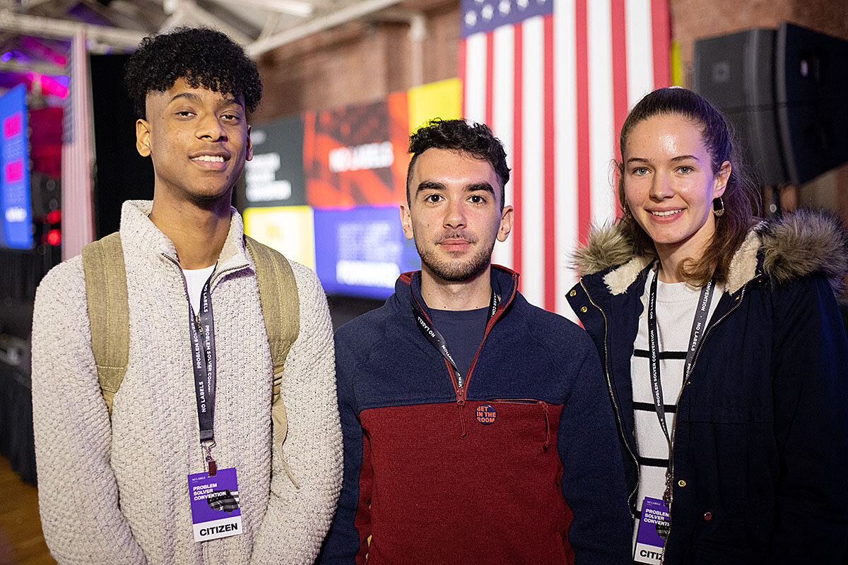 “Being in an environment like this was really cool for me, to see how many people are committed to bipartisanship and getting things done,” says Elias Kaul, standing with fellow students from the Brown University chapter of No Labels. Next to him, Brown student Isabelle Sharon adds that it’s a lot of work to persuade some liberal students to get past the barrier of “seeing the other side as anti-human, anti-gay, just sort of intrinsically evil in some ways.”