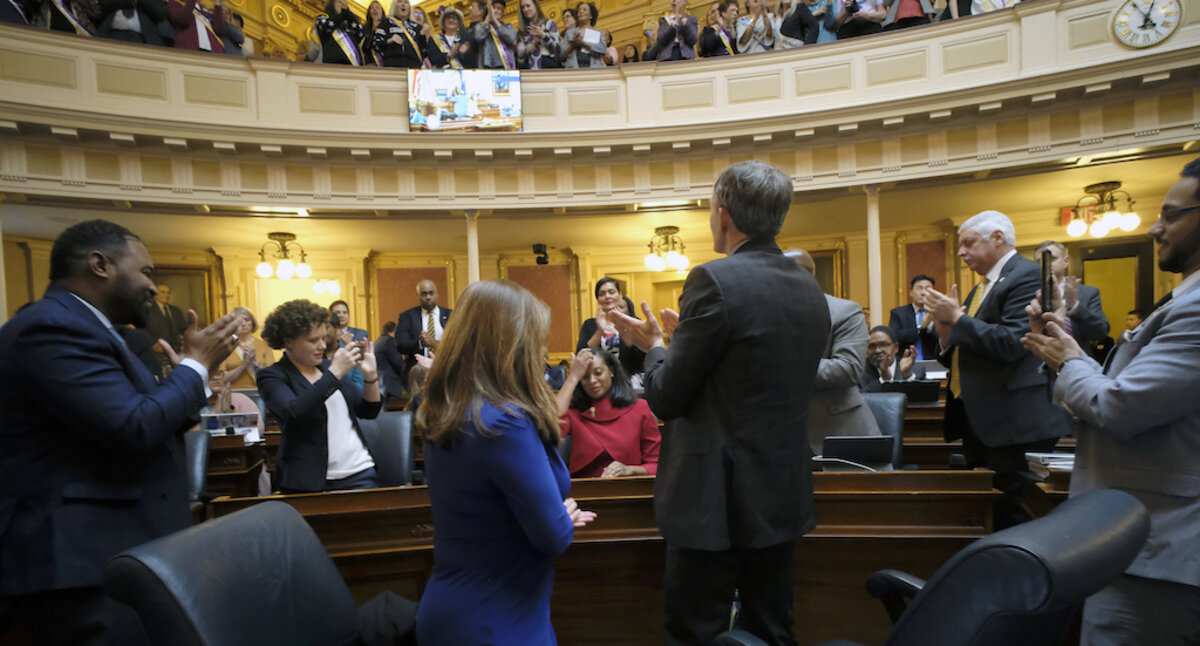 It passed there on a 59-41 vote presided over by Delegate Eileen Filler-Corn, the first female House speaker in the chamber's 400-year history. Spectators in the gallery erupted in the cheers as she announced the outcome. The Senate then passed it 28-12.