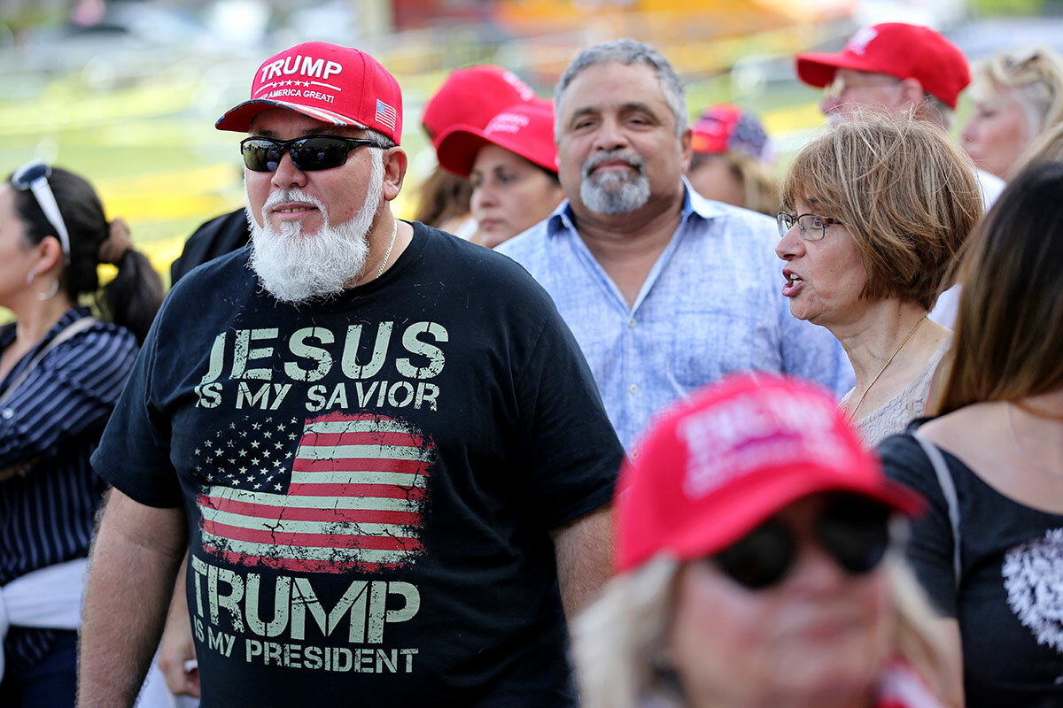 鈥淛esus is my saviour, Trump is my president,鈥 proclaimed a sign, star-spangled in red, white, and blue and held aloft by a rallygoer.