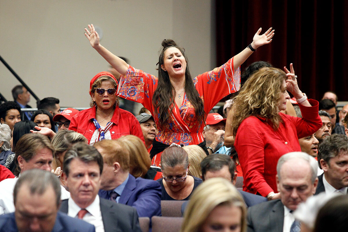 鈥淚 like that he鈥檚 politically incorrect,鈥 says a nurse named Malu, who declines to give her last name. She鈥檚 wearing a Trump T-shirt, a MAGA hat, and a gold cross around her neck, and is excited to be at her first Trump event. 鈥淗e鈥檚 like your uncle. He says stuff, but he鈥檚 trying to restore American values, like Ronald Reagan.鈥澛