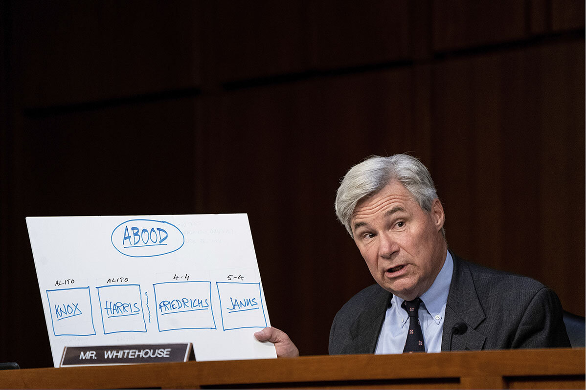 Republicans, he charges, continue to push an unpopular policy agenda through the courts.