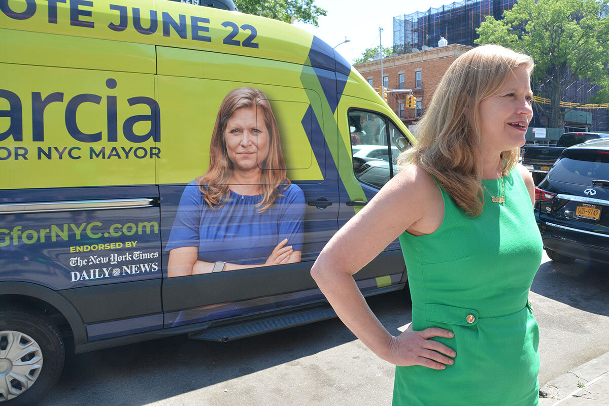 “I am listening to voters, and what voters say is that they aren’t feeling safe right now,” says Ms. Garcia at a campaign stop in Richmond Hill in Queens, home to the largest Sikh population in the city. Ms. Garcia is campaigning on a promise to get 10,000 illegal guns off New York City streets during her first year in office, partly by from $200 to $2,000. She wants to reassign more police personnel to the neighborhood policing unit and increase police presence on the subway, among other measures.