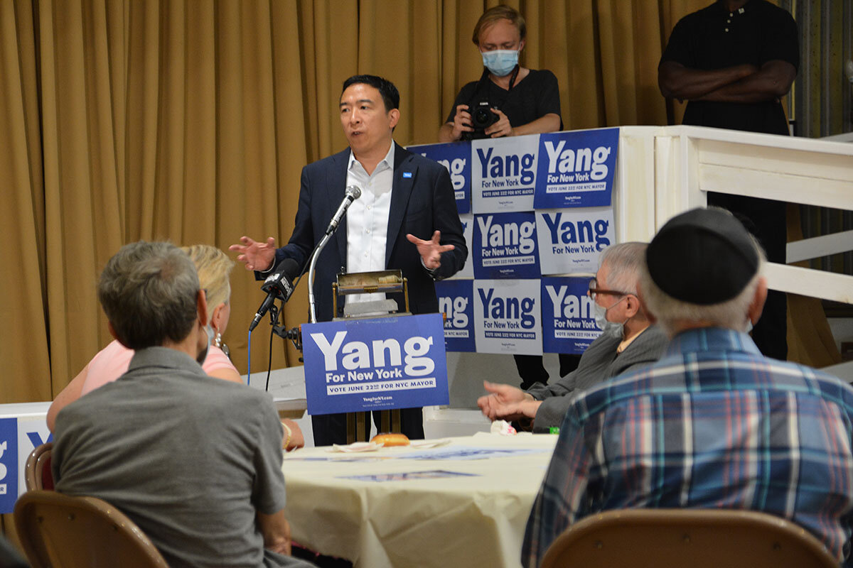 “In our neighborhood, Evelyn and I, we’ve seen the streets change,” Mr. Yang says. He’s just wrapped up an event at a Jewish center in Kew Garden Hills, also in Queens, during which he proclaims, to loud cheers from the crowd, that “defunding the police is the wrong answer for our city.” If elected, Mr. Yang promises to increase police presence at the city’s 472 subway stations as well as on the streets, while “bolstering the detective ranks” to improve crime-solving rates.