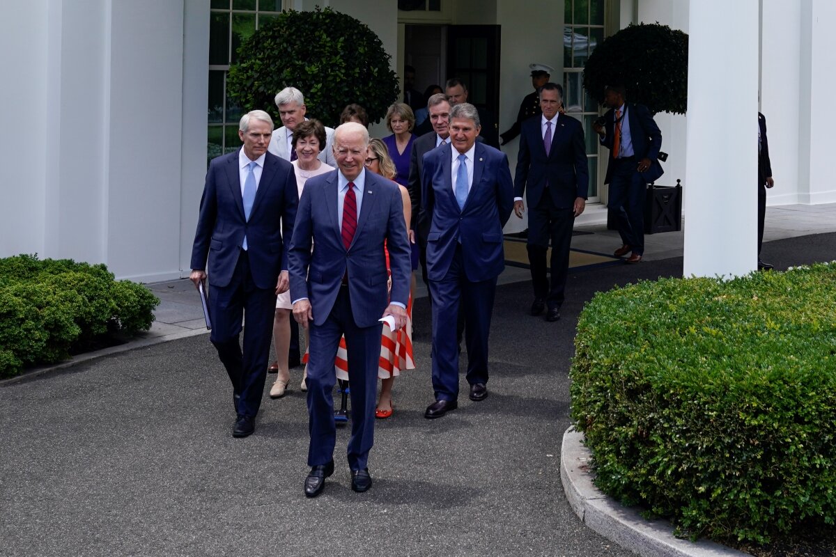 But Mr. Biden was only reveling Thursday in achieving GOP support for the deal, an agreement that he said evoked his political North Star: the bipartisan spirit of yore. As if to symbolize his effort, the former Delaware senator even put his hand on the shoulder of a stoic-looking Republican Sen. Rob Portman of Ohio as the president made a surprise appearance with a bipartisan group of senators to announce the basis for an accord outside the White House.