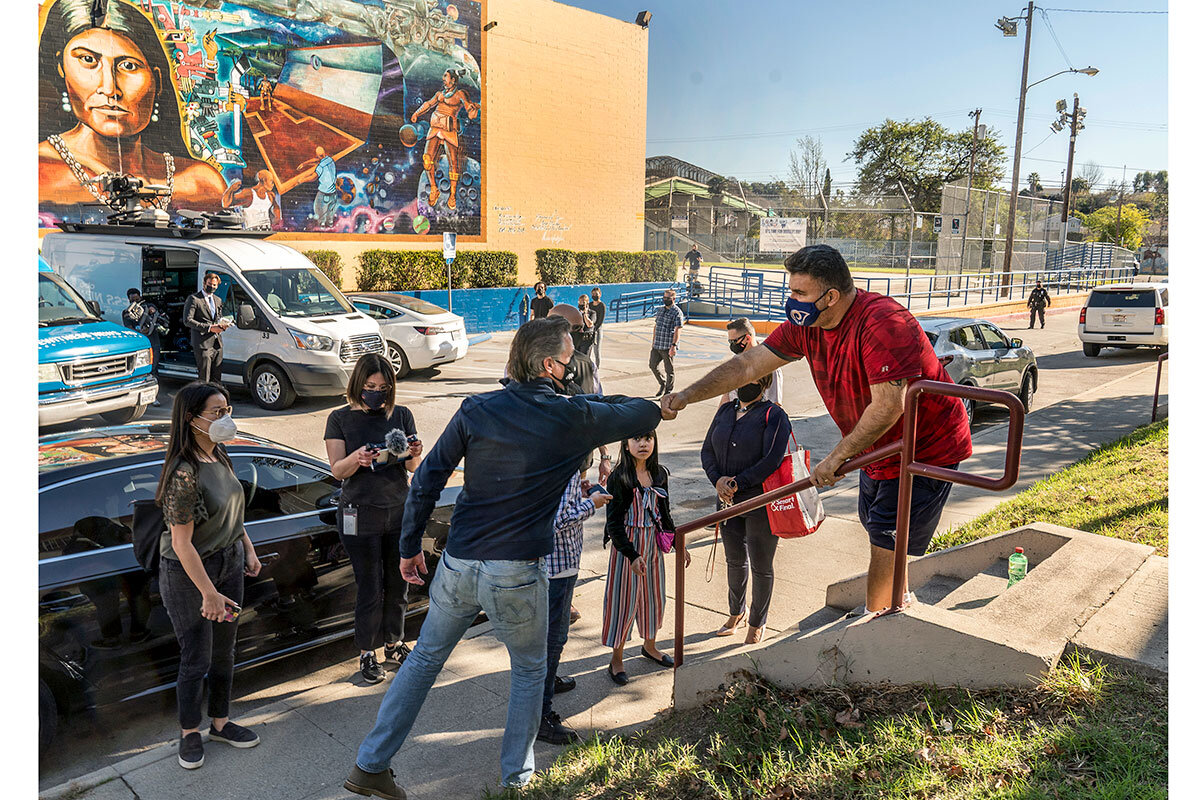 鈥淟atinos in California, specifically in working-class neighborhoods, have really borne the brunt of the pandemic and are very much at a crossroads when it comes to determining what is a priority for their own state, [and] also their own future,鈥 says Steven Almazan, who spent Sunday volunteering at a voter registration table along with other young Democrats in the Los Angeles neighborhood of Boyle Heights. Mr. Almazan grew up in this Latino enclave and served on the neighborhood council.