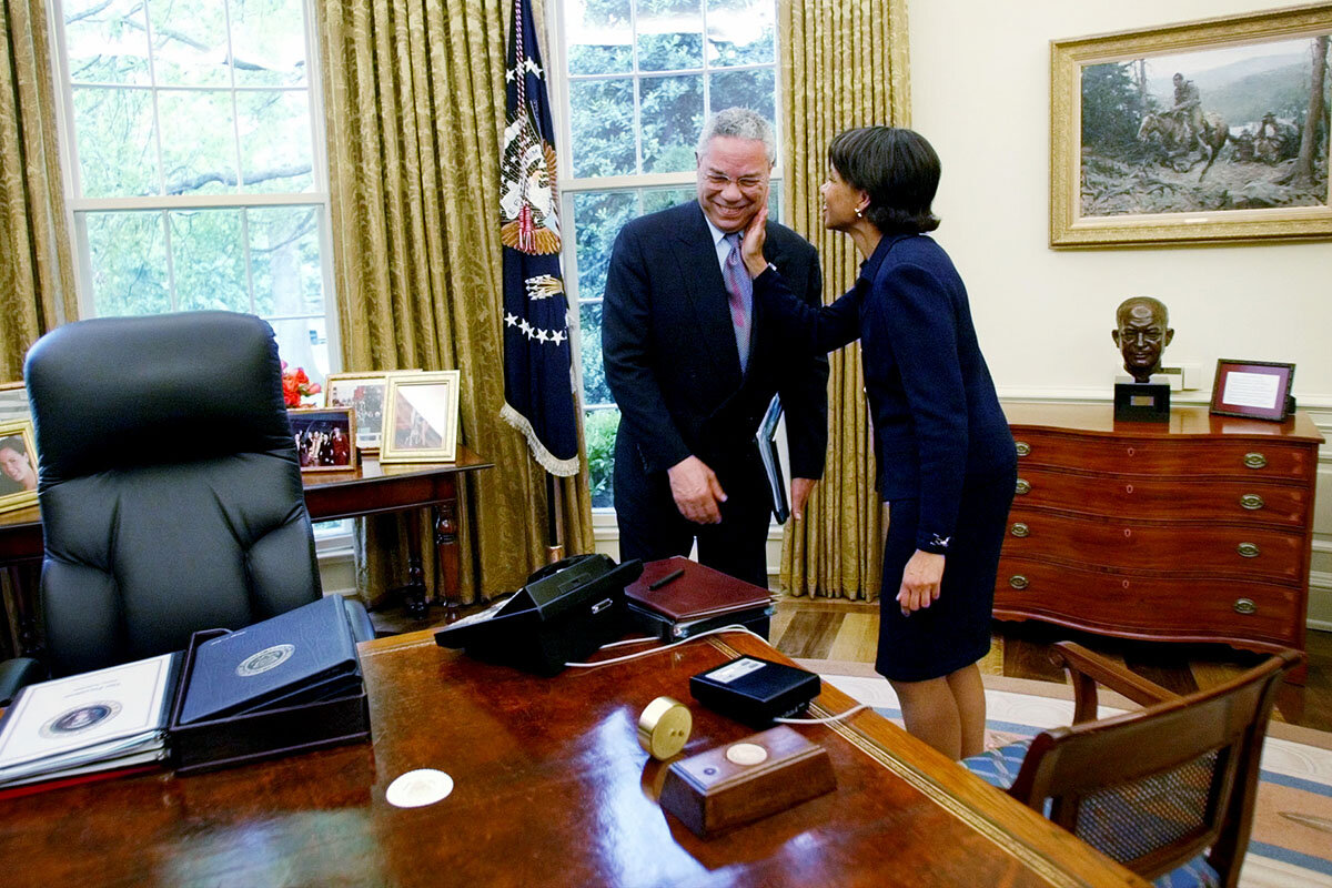 In 2001, newly elected George W. Bush, with little foreign-policy experience, asked General Powell to be his Secretary of State. When he was sworn in, Secretary Powell became the highest-ranking Black official to that point in American history, ranking fourth in the presidential line of succession.