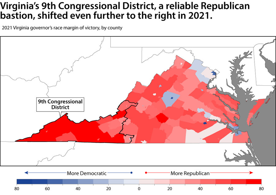 Like most of rural America, Virginia鈥檚 9th Congressional District 鈥 a swath of mountains and farmland slightly larger than the state of New Jersey, and the poorest district in the state 鈥 has become increasingly Republican in recent years. Former President Donald Trump has been widely credited with accelerating that trend, cranking up GOP turnout in hundreds of Pulaskis across the country to win the White House in 2016.听