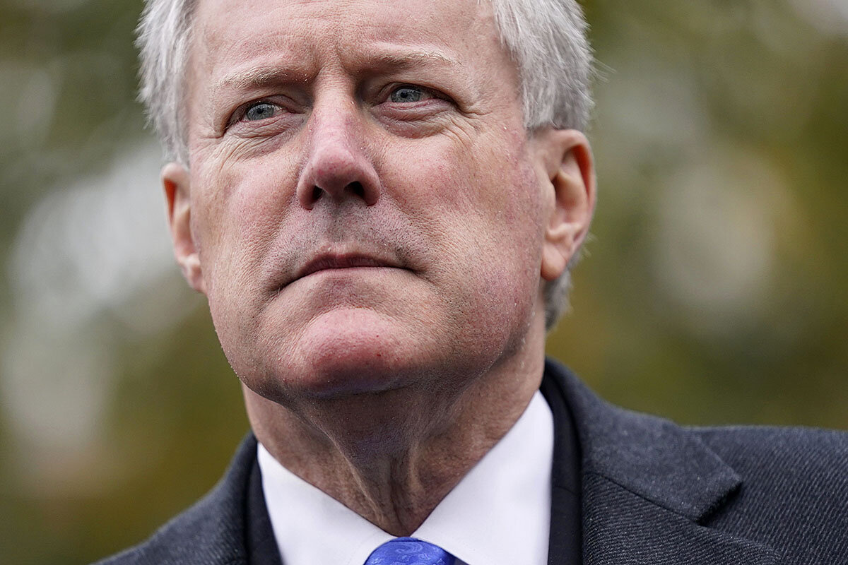 Overall, the Meadows documentary material lays out the step-by-step Trump post-election plan, say those who have seen it. First, rattle the door of state election officials to see if they鈥檒l throw out votes. Second, engage higher state officials to see if they鈥檒l pull rank. Third, call for more 鈥渁udits鈥 in key states. Fourth, push the Justice Department to launch fraud investigations, however thin the evidence 鈥 Mr. Meadows at one point sent Justice officials spurious allegations about bizarre foreign fraud plots.