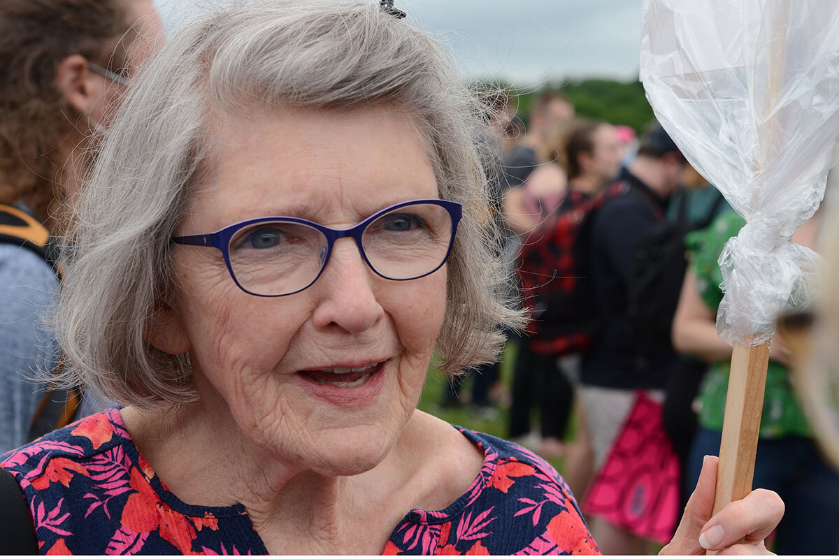 Marge Matthews, who鈥檚 in her 80s and here with her 60-something daughter, is a veteran of marches 鈥 against the Vietnam War and for women鈥檚 rights. Her observation of how younger protesters are behaving at the march: 鈥淭hey鈥檙e more outspoken. They say it like it is 鈥 dirty language and all.鈥