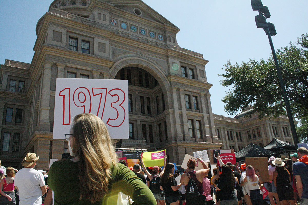 Patricia Kruger, standing on the grounds of the Texas Capitol in Austin on Saturday, holds a sign that says simply, 鈥1973.鈥澨
