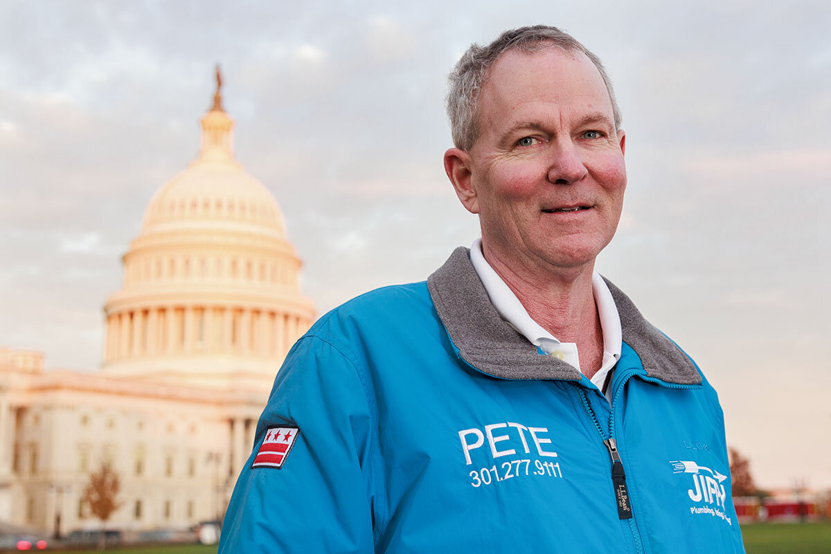 If Pete Kristiansen weren’t colorblind, he might be flying 30,000 feet above American politics, fulfilling his youthful dream of becoming a pilot. Instead, he’s on his hands and knees in the nation’s capital, sniffing drains and solving the plumbing woes of important people – from foreign diplomats and congressional staffers to famous authors and CEOs. He also sees a side of America many elites don’t, walking into the living rooms and bathrooms of people living in humble circumstances, sometimes too poor to pay their heating bills.
