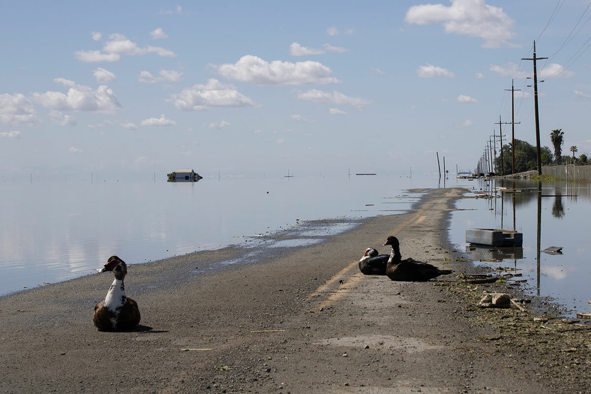 “Everyone was praying for rain, and now everyone’s praying for it to stop,” says Corcoran Deputy Police Chief Gary Cramer. He briefly excuses himself to stop some people from driving past the “closed road” sign. “Every time I come out here,” he adds, “the water just gets higher.”