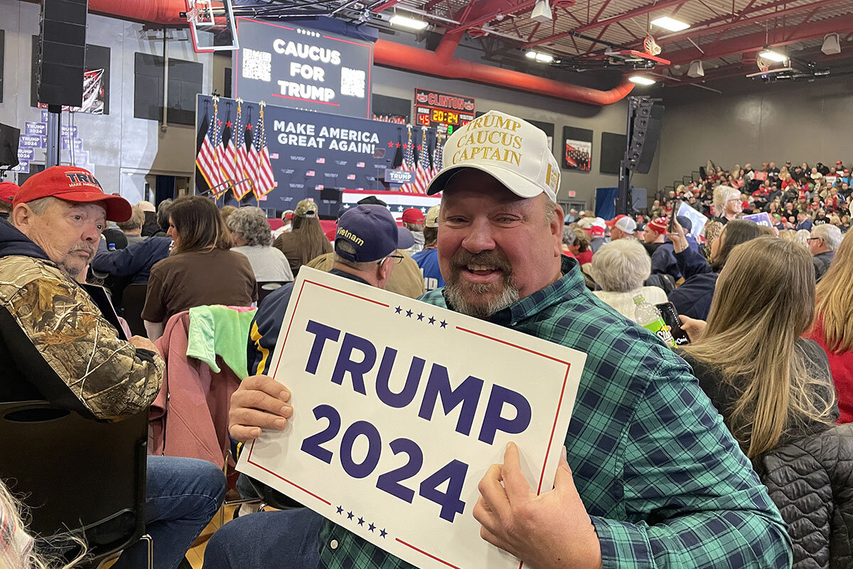 In Clinton, the crowd was dotted with white baseball caps emblazoned with 鈥淭rump Caucus Captain鈥 in gold. One belonged to Dave Fisher, a truck driver and city council member from a small town west of Cedar Rapids, who received an email from the campaign a few months ago asking if he planned to caucus for the former president. 鈥淭he next thing you know,鈥 says Mr. Fisher, he was on a video call with a hundred other caucus captains and Mr. Trump himself.聽