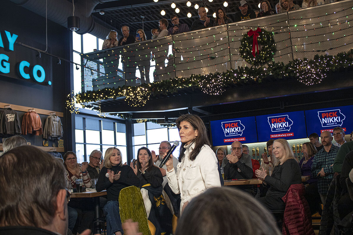 鈥淩ightly or wrongly, chaos follows him,鈥 Ms. Haley tells the crowd packed into a North Liberty brewery, speaking of Mr. Trump. 鈥淲e can鈥檛 have a country in disarray and a world on fire and go through four more years of chaos, because we won鈥檛 survive it.鈥澛
