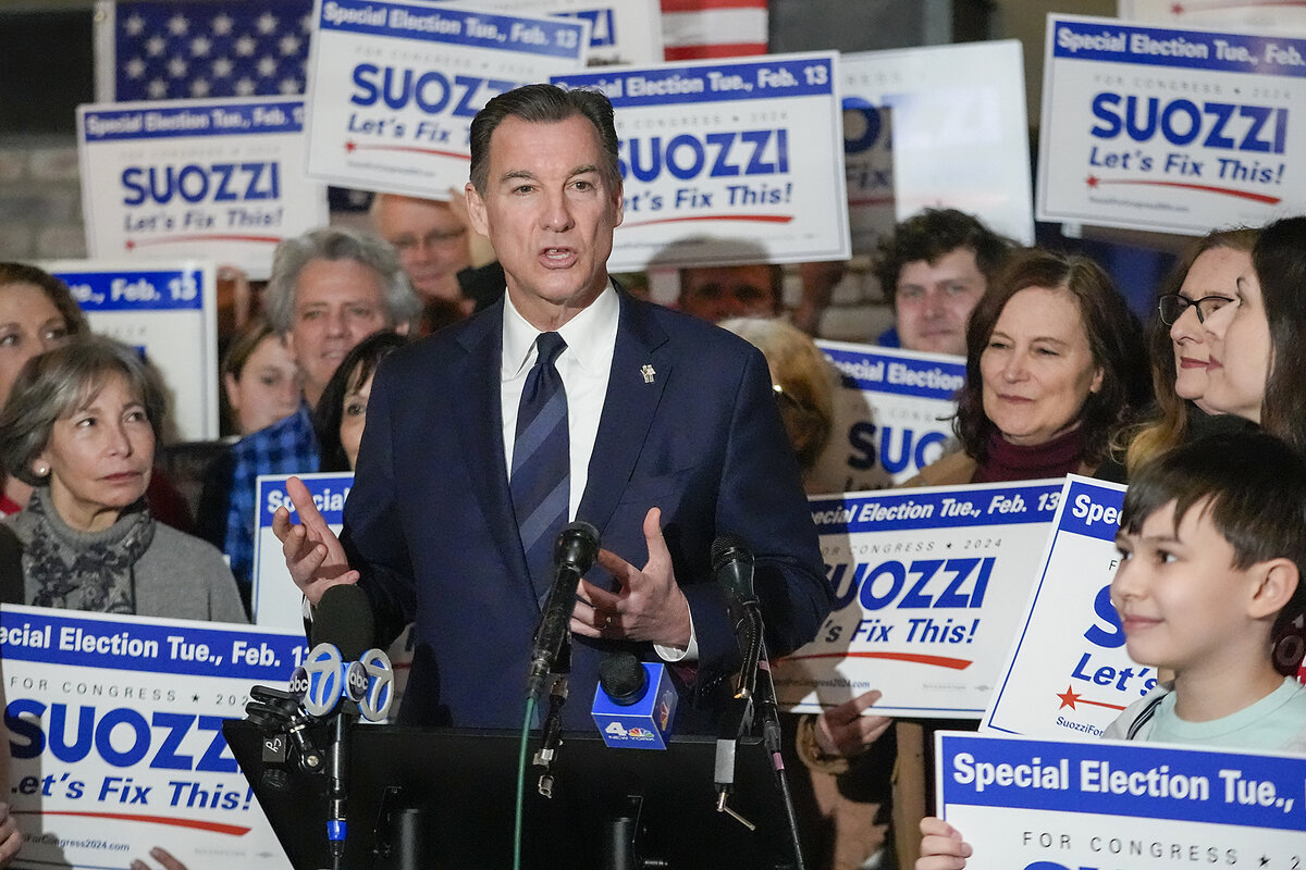 And with just nine months to go before November, the race offers an early test of campaign messaging in a swingy suburban district. President Joe Biden won by here in 2020, before Mr. Santos 鈥 the recently expelled Republican who misused campaign funds and lied about almost every aspect of his r茅sum茅 鈥 won by an almost in 2022.聽The Long Island district is rated by the Cook Political Report as a 鈥渢oss-up,鈥 with former Democratic Rep. Tom Suozzi holding聽聽in recent polls over Republican Nassau County Legislator Mazi Pilip.聽
