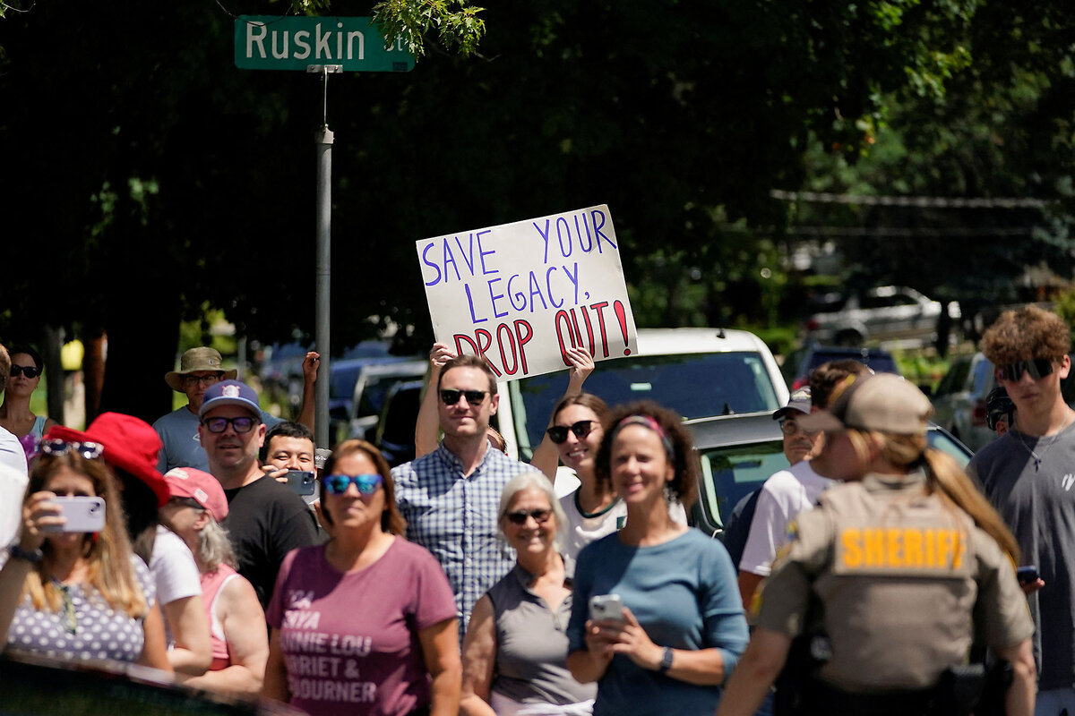 鈥淪ave your legacy, drop out,鈥 one sign read outside Mr. Biden鈥檚 rally in Madison. At other stops, protesters criticized the president for 鈥済enocide鈥 in Gaza. There were also reminders of his opponent, who has been widening his lead in recent polls. As the Biden motorcade sped along a Pennsylvania highway, we passed a Trump billboard urging motorists to 鈥淎chieve the American dream!鈥