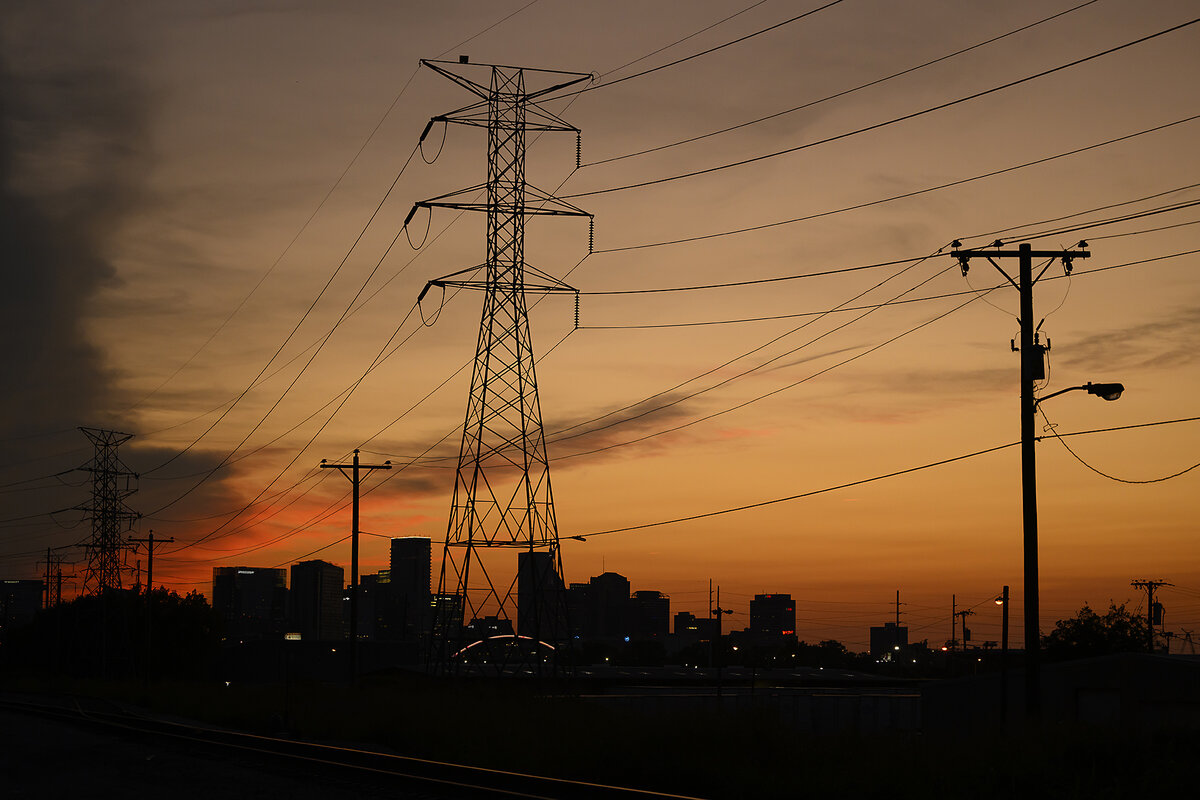 Electric power lines are seen near Nashville, Tennessee. The U.S. presidential candidates differ sharply on whether to rely on fossil fuels or on renewable sources.