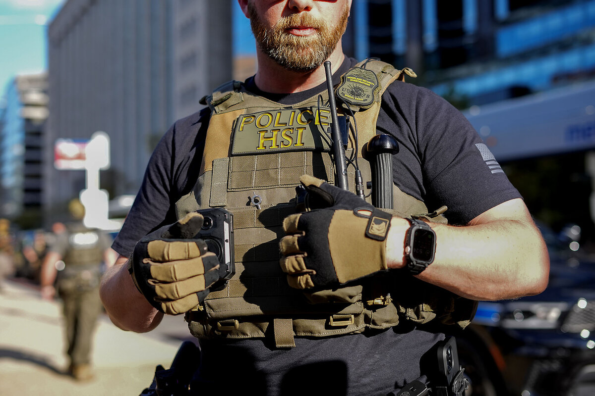 On the night of Aug. 27, a Monitor reporter saw four agents from Homeland Security Investigations (HSI) 鈥 a component of ICE covering criminal investigations 鈥 appear to detain an individual on a residential street. None wore masks.