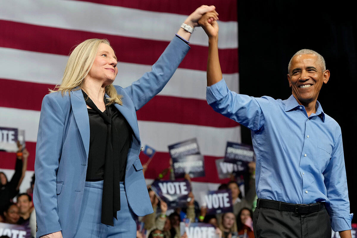 Polling shows Democratic U.S. Rep. Mikie Sherrill is leading in a close race against Republican Jack Ciattarelli, a three-time candidate for governor. Observers have pointed to similarities between Ms. Sherrill in New Jersey and Ms. Spanberger in Virginia 鈥 both are politically moderate women with backgrounds in national security.