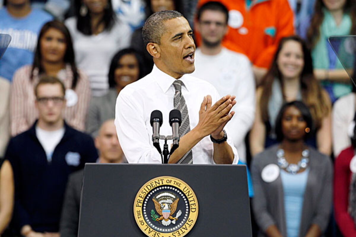 The backdrop for Obama's Tuesday speech in North Carolina was clearly political. Although not framed as a campaign speech, he cast himself as a populist defender of ordinary Americans, standing up against Republican skeptics of federal student-aid programs.